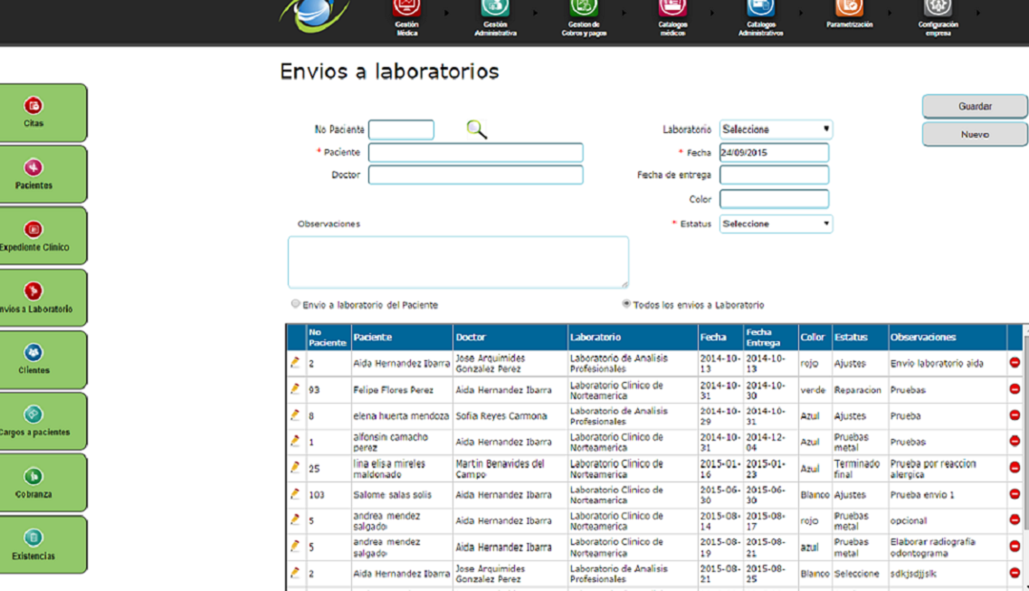 Envíos a laboratorios